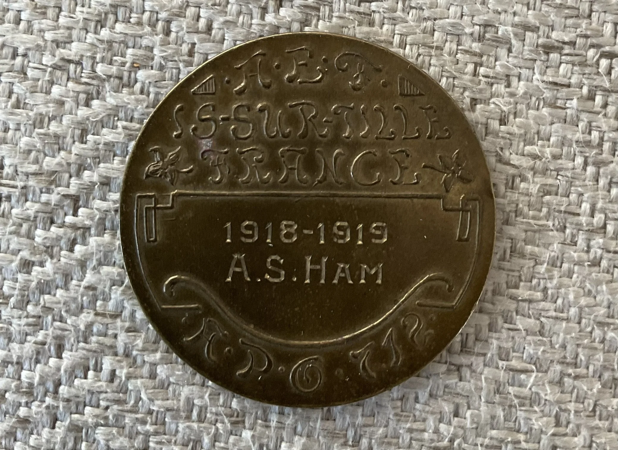 Private Ham (3063540) departed New York on his way to France aboard the U.S.S. Euripedes on 16 August, 1918, as part of Company “M”, 34th Engineers. While serving in France, he was a member of the Washington Lafayette Masonic Club in Is-sur-Tille, France. A.P.O. 919.