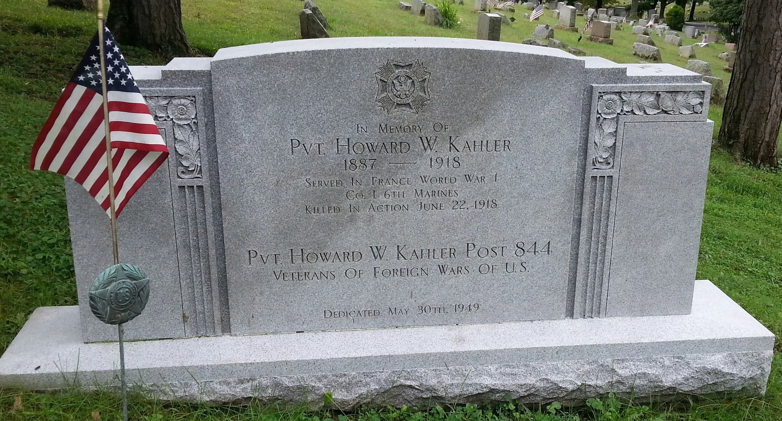 Bro. Kahler was killed in action on 22 June, 1918, in the Chateau-Thierry Sector and interred in France at Lucy-le-Bocage, Aisne. On 5 June, 1919, he was disinterred and reburied in Grave No. 105, Plot 3, Section S of the American Cemetery in Belleau, Aisne. In August, 1921, he was again moved and now rests in Williamsport, Lycoming, Pennsylvania.