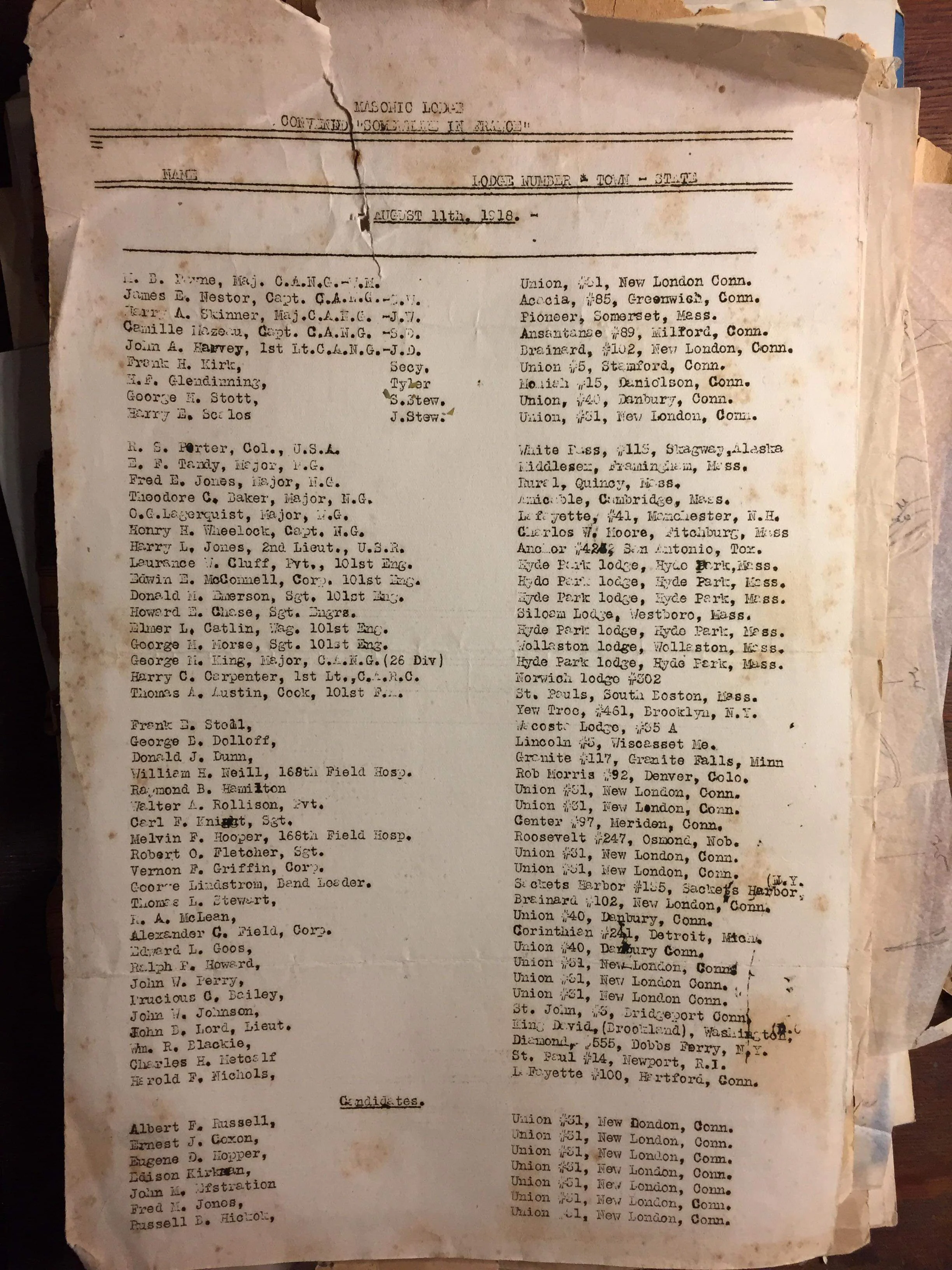 On 11 August, 1918, a meeting of Masons from the 26th Division was held “somewhere in France”. Our research is just beginning on this lodge.