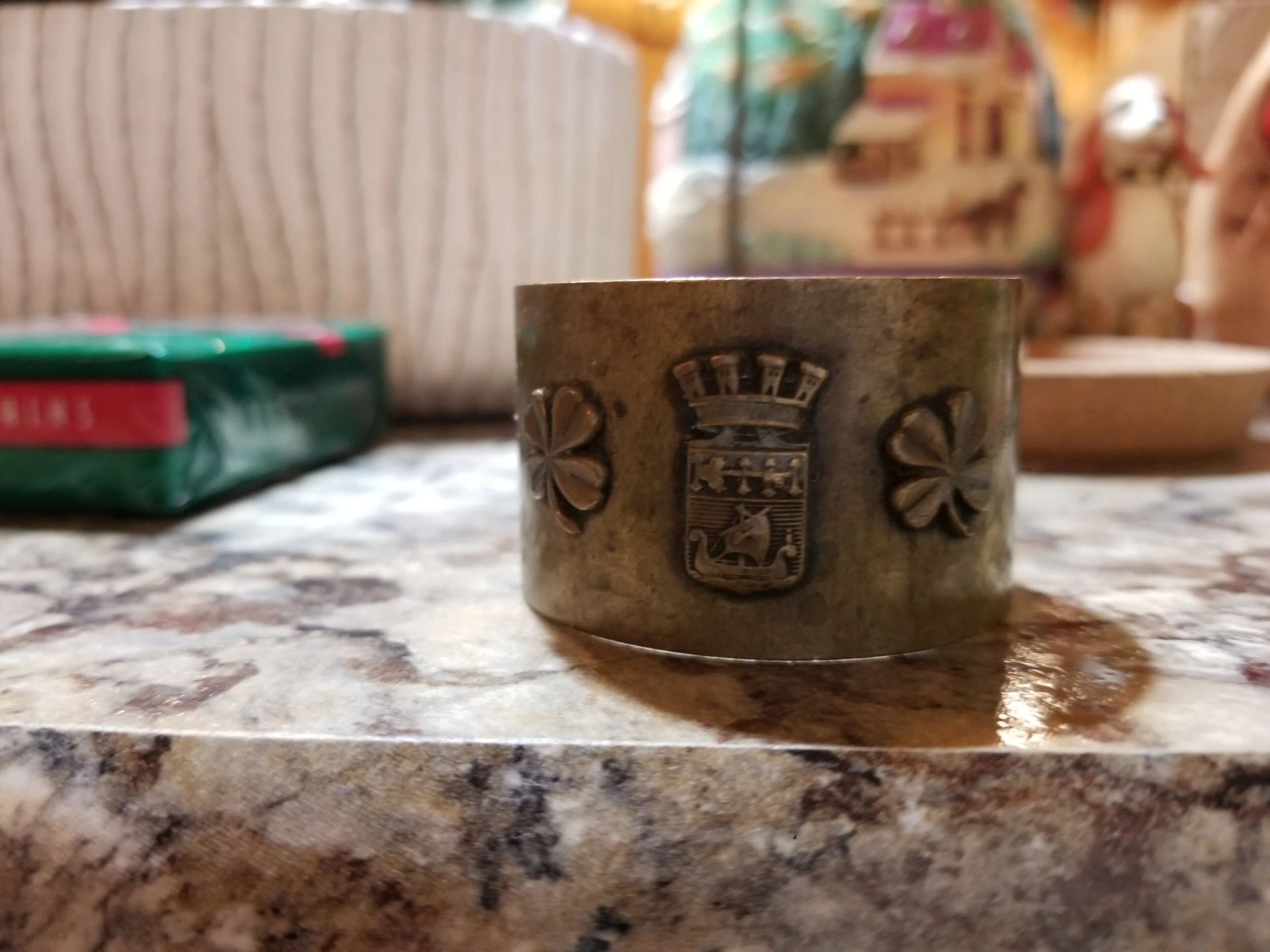 Souvenir ring from the Masonic Club in Saint-Nazaire. Thank you to our anonymous donor for these photos. “Souvenir of Masonic Theater Party, Masonic Club of St. Nazaire, Base # 1 A.E.F.”